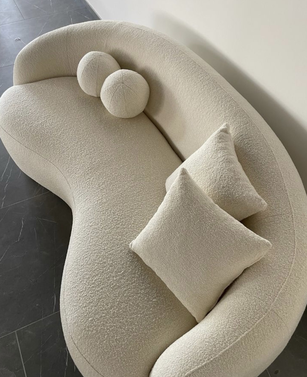 Curved Cream Bouclé Sofa